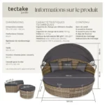 | Nom du produit | ENSEMBLE TABLE CHAISE DE JARDIN – TECTAKE – Lit de Jardin SANTORIN extérieur Modulable en Salon en Résine – Marron Naturel |