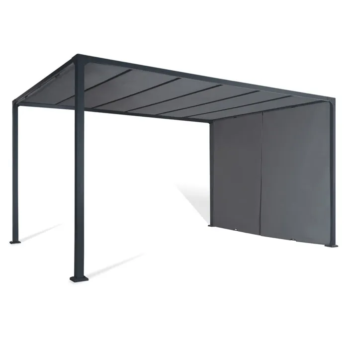 Accueil Fours à pizza IDMARKET Pergola coulissante 2 pans 3×4 M belvédère de jardin toile gris anthracite
