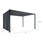 Apportez une touche de modernité dans votre jardin grâce à votre nouvelle pergola de 3×4 M ! Les deux toiles coulissantes grises de la pergola s’adaptent à vos besoins. Tirez les toiles pour ombrager davantage une partie ou une autre de votre extérieur. La toile de 160 gr/m² est idéale pour vous protéger du soleil ainsi que des faibles pluies.