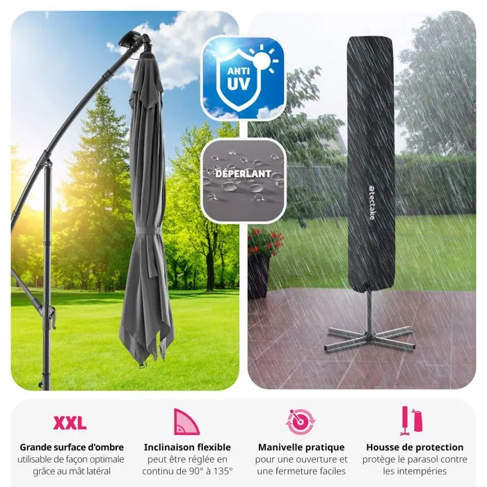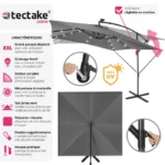 Parasol déporté en Métal avec housse de protection TECTAKE. Idéal contre les rayons du soleil pour les jardins, les terrasses