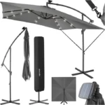 Nom du produit PARASOL – TECTAKE – Parasol à LED solaire SUNNA hydrofuge avec manivelle 2,5 x 2,5 m inclinaise réglable en continu – Gris clair