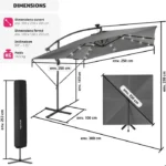 Protégez votre espace repas des rayons du soleil avec le parasol gris CALVI de 3×4 M. Grâce à sa toile