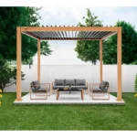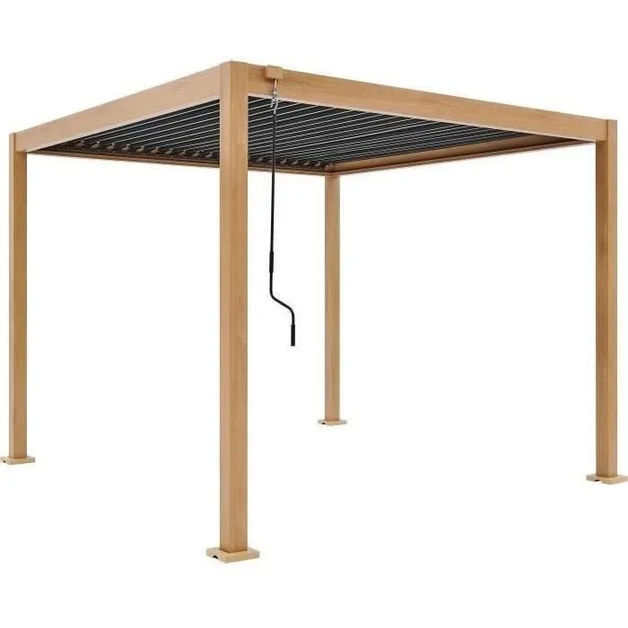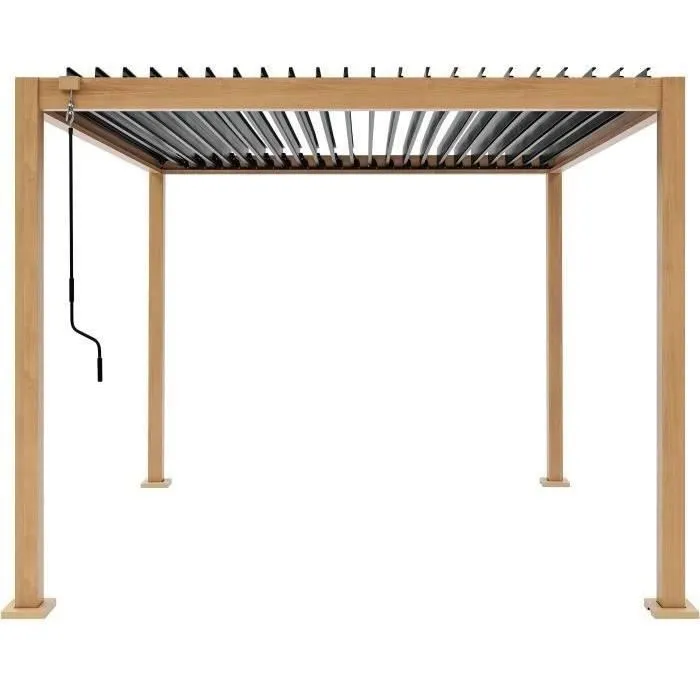 Nom du produit Pergola bioclimatique GAYA – Structure en aluminium et en acier – l300 x P300 x H240 cm – Aspect Bois