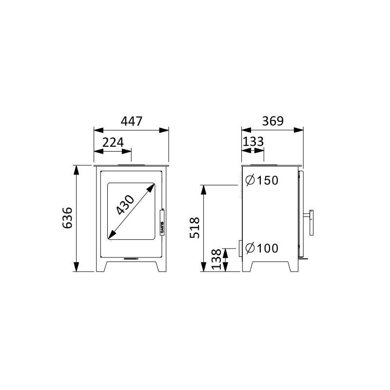 Schéma technique du Poêle à bois en fonte étanche – SUPRA Oscar 4.8 kW