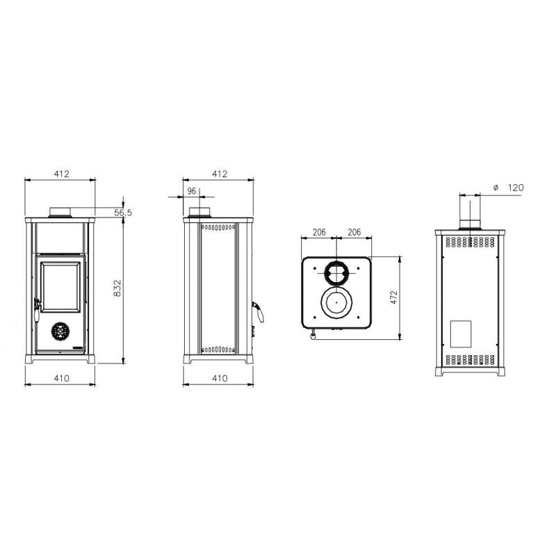 Schéma technique du Poêle à bois – LA NORDICA Tea 6.6 kW