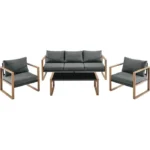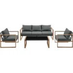 | Type de Produit | Salon bas de jardin en aluminium effet bois avec coussins – 5 personnes – PUERTO – Gris |