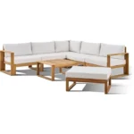 Le salon de jardin d’angle modulable LEVATA XL en bois d’acacia est idéal pour 7 personnes. Il inclut un ottoman et une housse pour une protection optimale. Sa finition en blanc cassé lui confère une élégance intemporelle, parfaite pour embellir votre extérieur.
