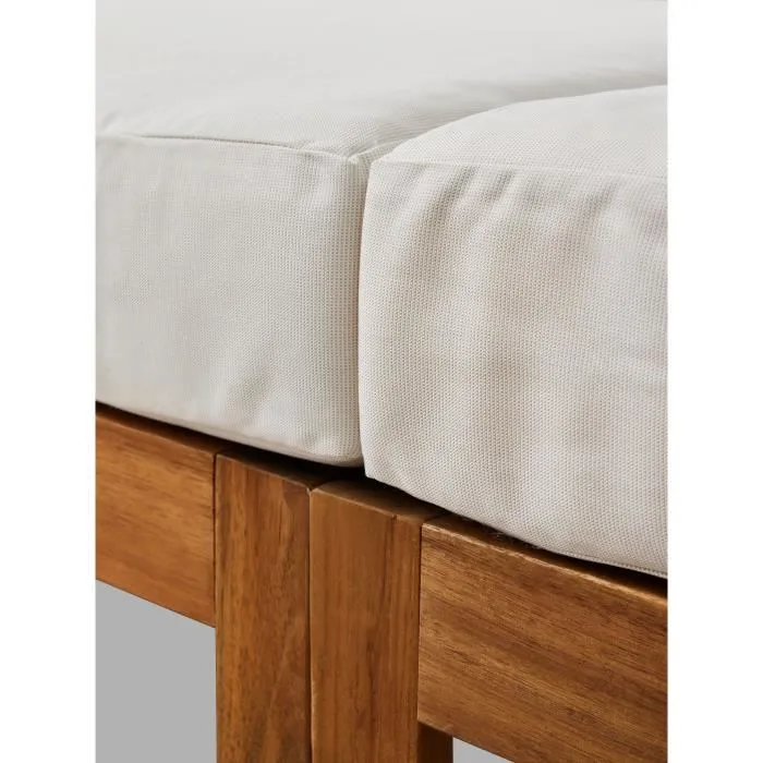 Polyvalent et chic, le salon de jardin d’angle modulable LEVATA OTTOMAN en bois d’acacia accueille 6 personnes. Il est doté