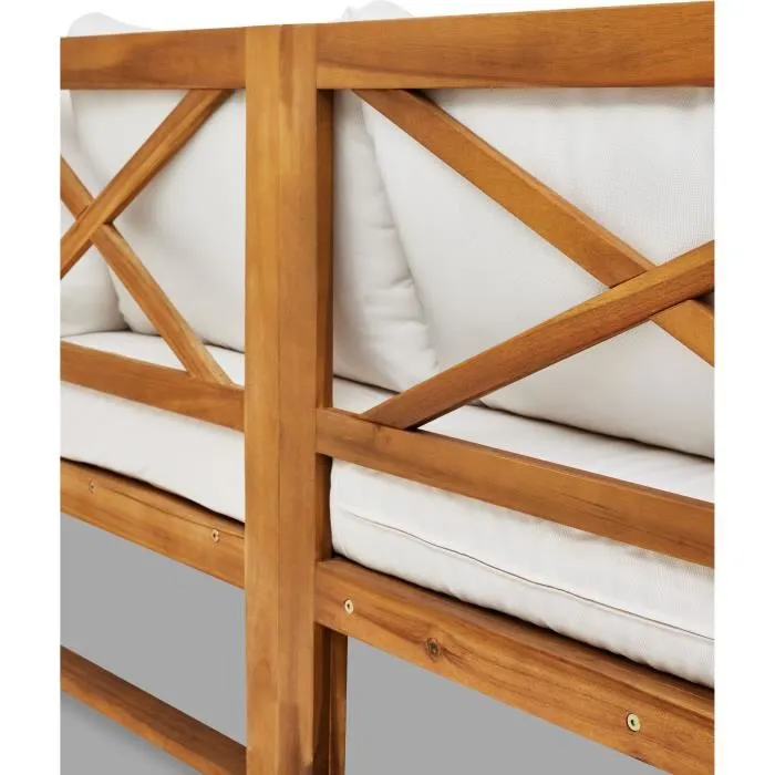 Nom du produit Salon de jardin d’angle modulable – Bois d’acacia – 7 personnes – LEVATA XL – Blanc cassé + Housse