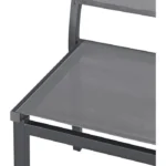 Cet agréable salon de jardin de couleur gris foncé, en résine injectée, se compose d’une agréable banquette de deux places,