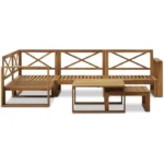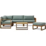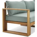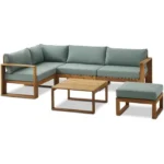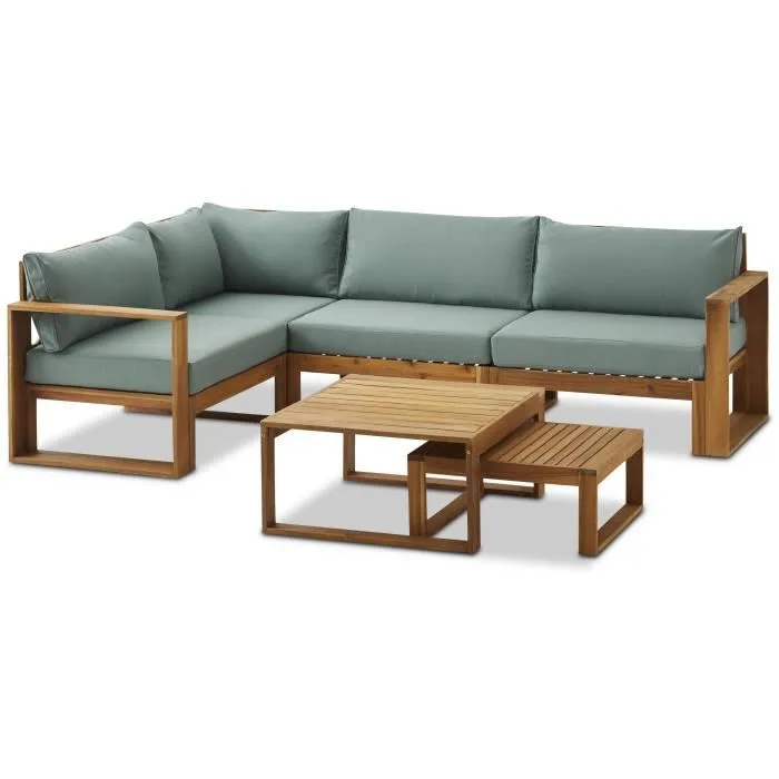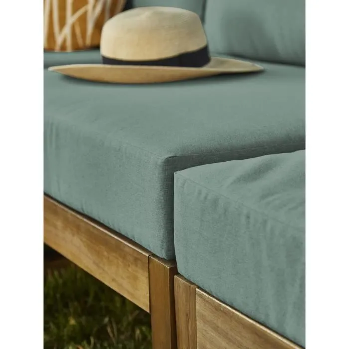 Cet agréable salon de jardin de couleur vert d’eau, en bois d’Acacia FSC, se compose d’éléments individuels qui peuvent s’assembler selon vos envies. Sa structure en bois d’Acacia le rend design et robuste. Ce salon de jardin est parfait pour s’adapter à toutes vos envies. Dimensions des modules : 85 x 72 x 75 cm.