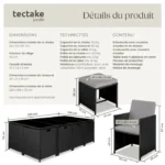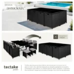 Nom du produit Salon de jardin – TECTAKE – Ensemble détente repas d’extérieur PALMA 10 places pliable encastrable avec housse incluse – Noir/Gris