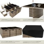 | Plus produit | Adapté aux grandes familles Salon de jardin encastrable Economie de place lors du remisage Housse de protection incluse Housse des coussins hydrofuge et amovibles (2 sets inclus) |